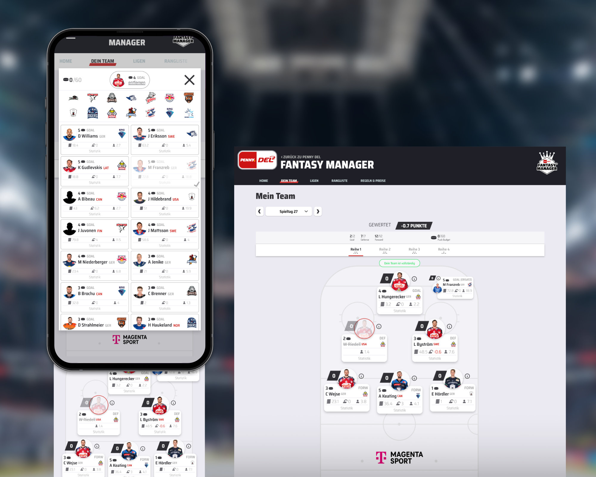 The Penny DEL Fantasy Manager accompanies the 2025/26 ice hockey season. Prove yourself as a manager and create your own team to climb the rankings. All users have the same puck budget available, so this is where your expertise really counts. Players are rated after each match day and you receive points based on their performance. The best players can win great prizes, such as a season ticket for your favorite club for the entire 2026/27 season!