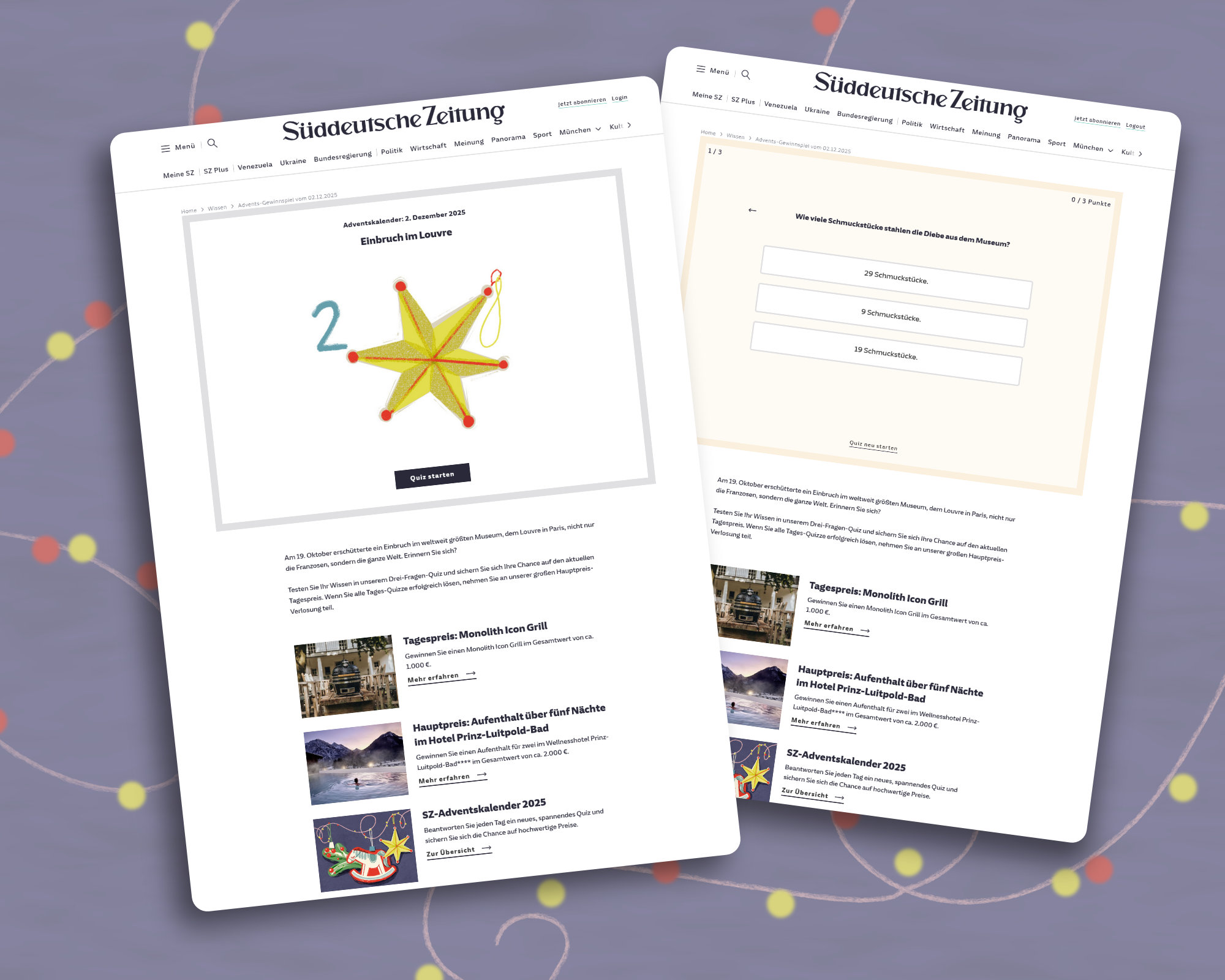 Sueddeutsche.de advent calendar 2025 Interactive calendar with exciting prizes